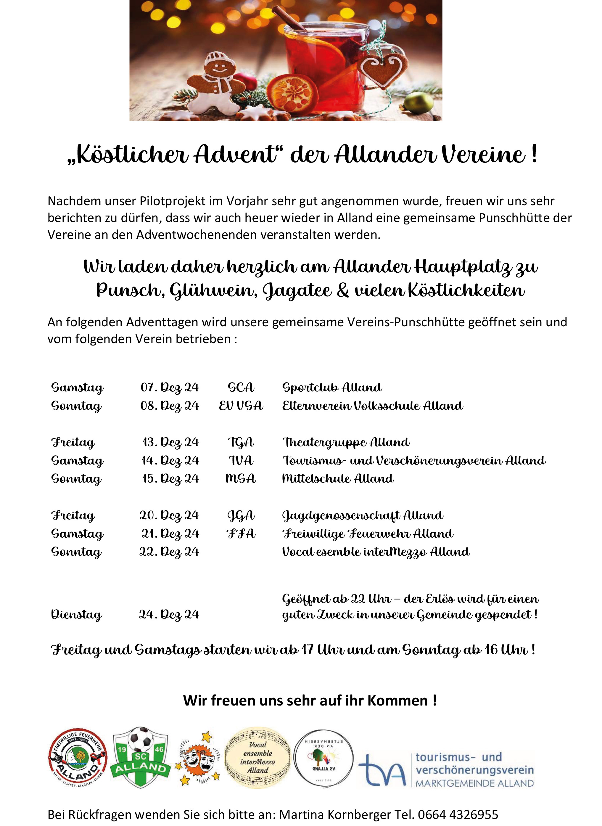 Wir freuen uns sehr, dass auch im heurigen Jahr der vereinsübergreifende Punschstand am Hauptplatz zustande kommt.